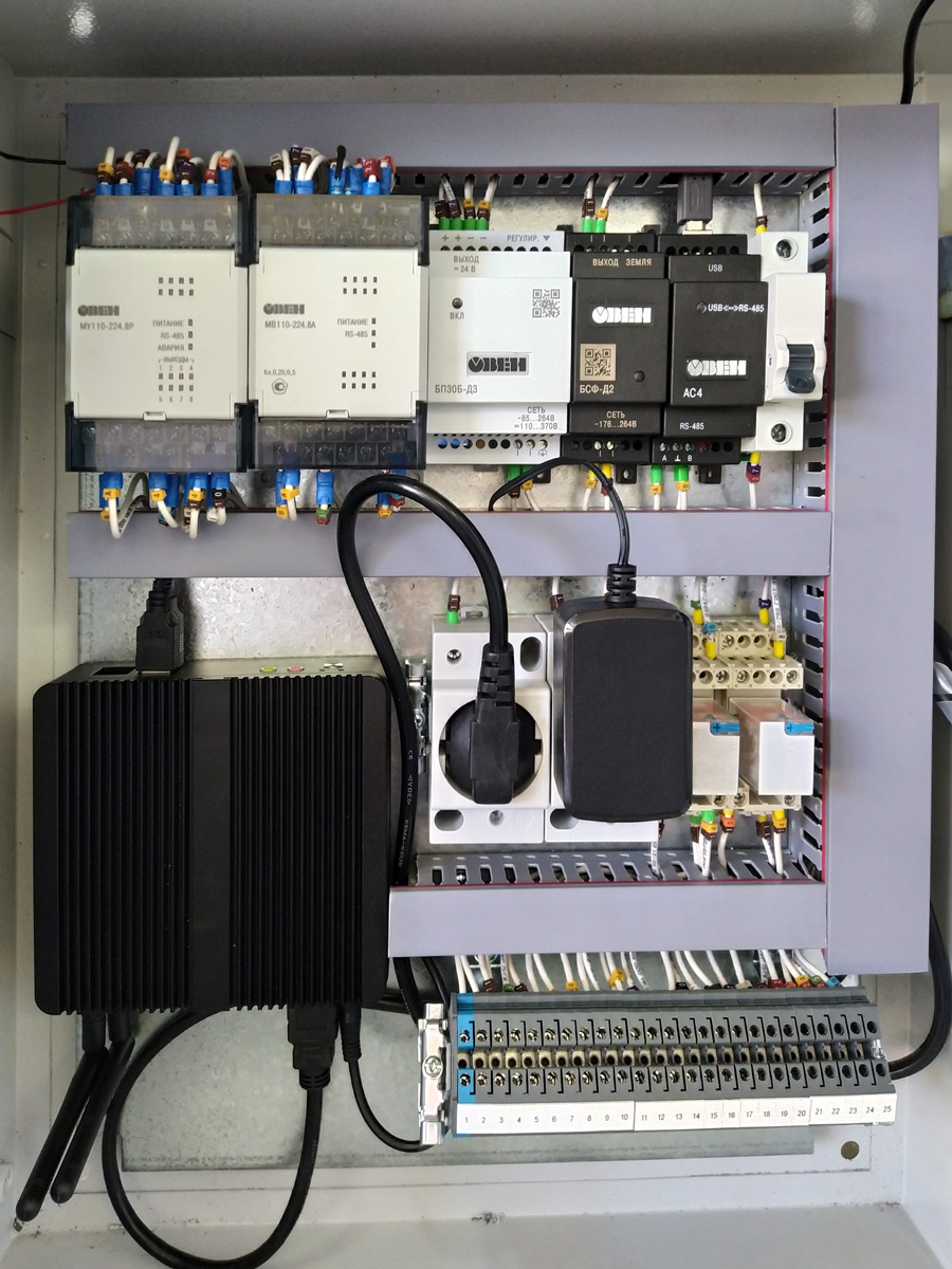 А.А.: В планах попробовать исключить электронные модули ввода-вывода серии Мх110 с интерфейсом управления RS-485 и перейти на 210 серию с интерфейсом Ethernet и управлением по протоколу SNMP. Пока останавливает только отсутствие достаточного количества свободного времени и опыта работы с новыми модулями.