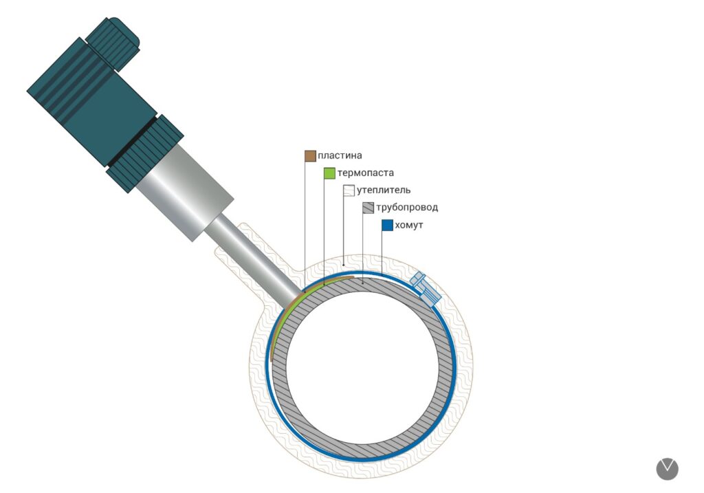 - Для обеспечения эффективного теплового контакта пластины (1) и трубопровода (4) применить термопасту (2).