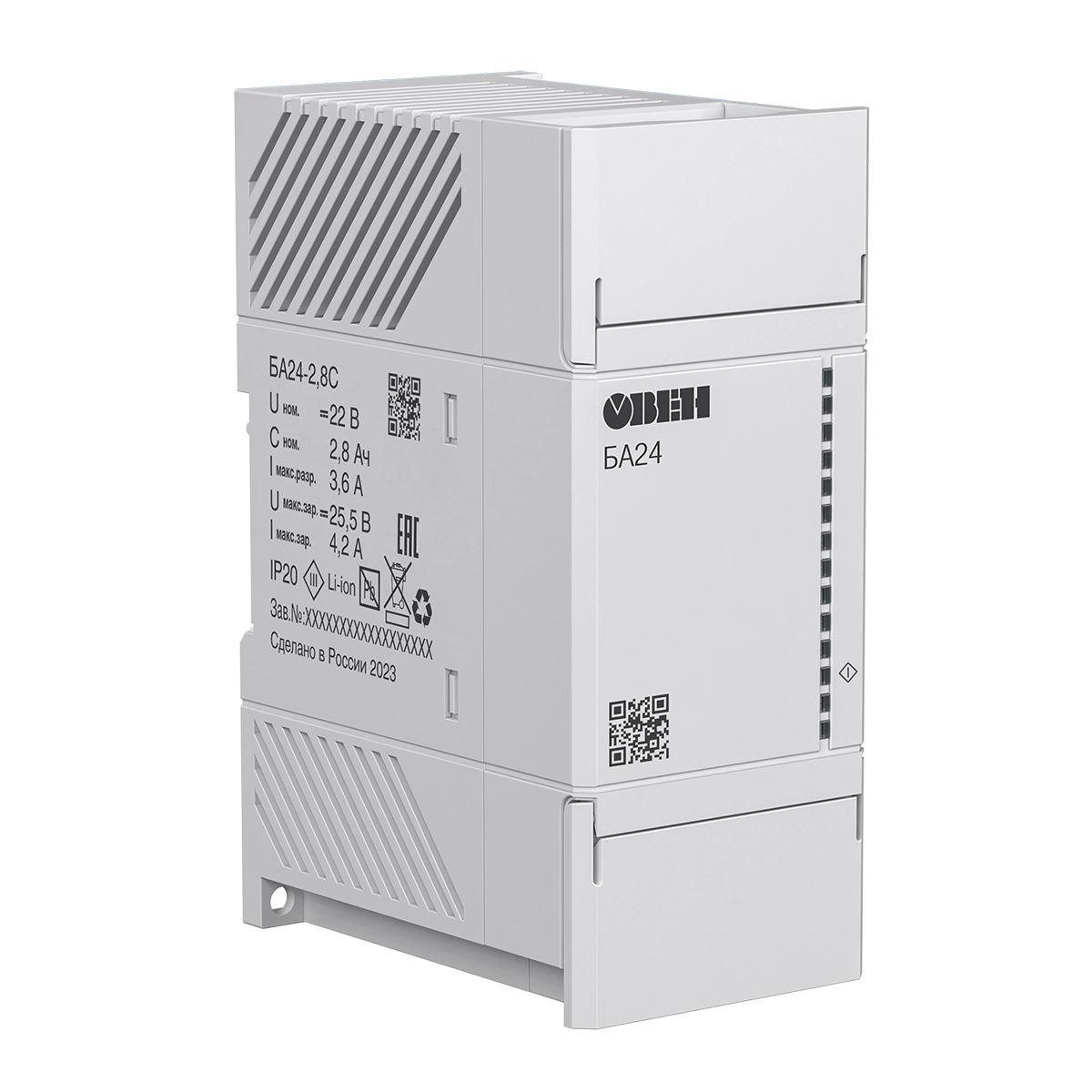 Блоки аккумуляторные для ИБП БА24 и БА12 со встроенным Li-on-аккумуляторными батареями предназначены для обеспечения резервного питания элементов автоматизированной системы управления технологическим процессом, а также прочих изделий и систем в промышленности. БА24 и БА12 являются частью «Экосистемы-210» компании ОВЕН и рекомендуется для совместного применения с ИБП.