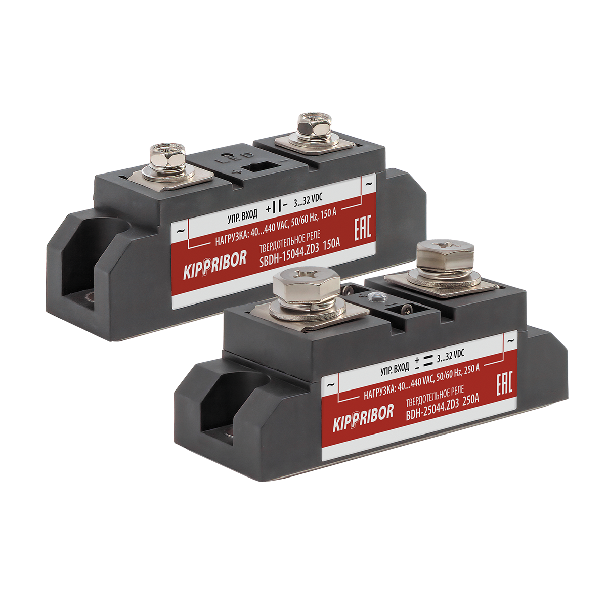 Однофазные ТТР BDH-xx44.ZD3 и SBDH-xx44.ZD3 – это серии твердотельных реле в корпусах промышленного стандарта, специально разработанных для коммутации нагрузок большой мощности. Благодаря своим конструктивным особенностям и широкому диапазону коммутируемых токов реле этих серий позволяют успешно решать различные задачи по управлению индуктивной и резистивной нагрузкой.