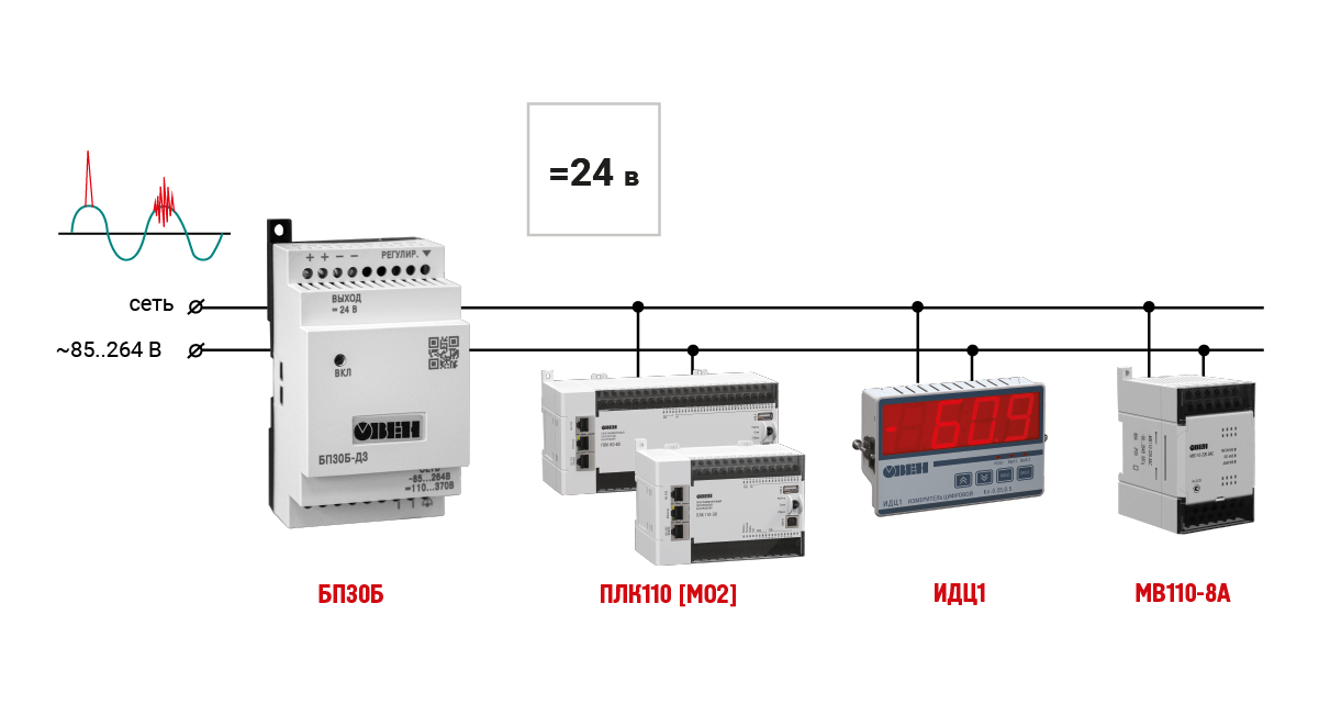 Промышленные блоки питания ОВЕН БП15Б, БП30Б, БП60Б предназначены для питания стабилизированным напряжением постоянного тока широкого спектра радиоэлектронных устройств – релейной автоматики, контроллеров и т. п.