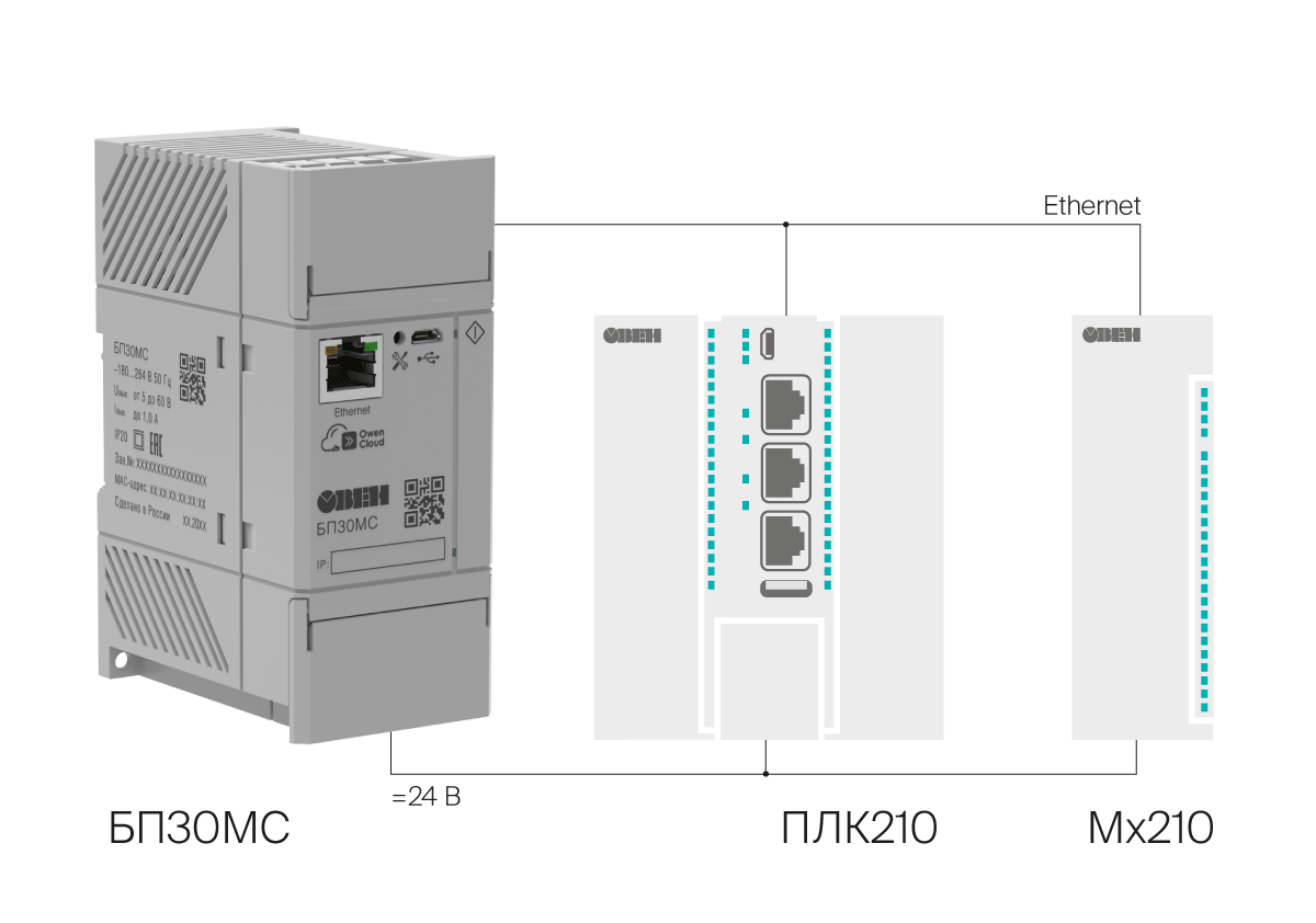 Стабилизированное питание и передача данных о состоянии питания по сети Ethernet в ПЛК верхнего уровня