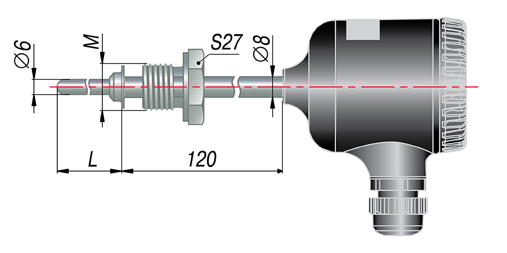 ** По спец. заказу возможно изготовление датчика с трубной резьбой.