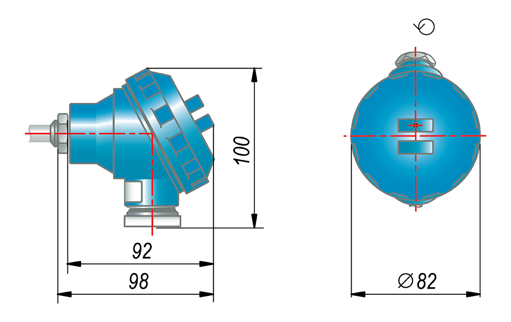 - измерительный преобразователь НПЦ-1 RS-485, встроенный в головку датчика (диапазон температур окружающего воздуха: -40…+85 0С).