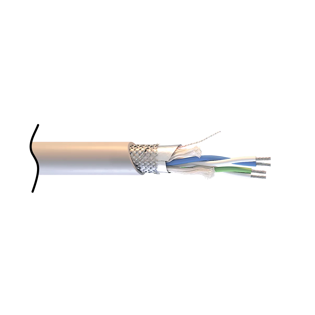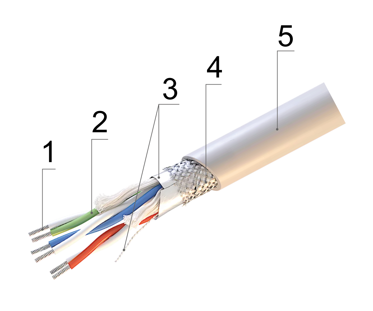 Кабель симметричный, экранированный и с низким дымо- и газовыделением продуктов горения.