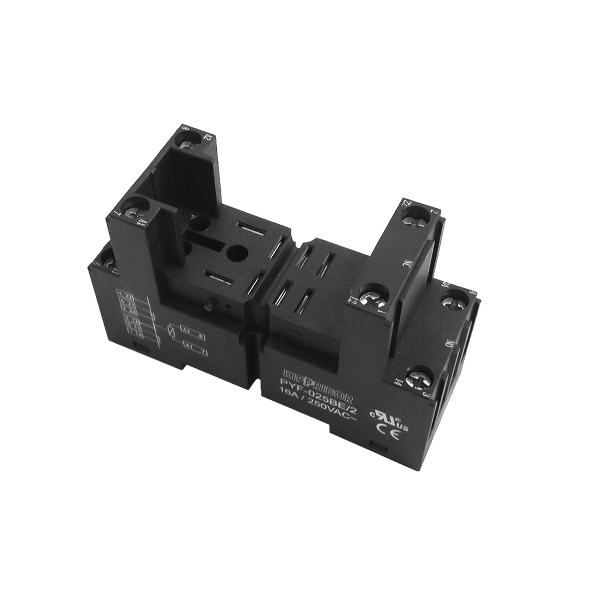 Монтажные колодки KIPPRIBOR PYF-025BE, PYF-045BE для 2- и 4-контактных промежуточных реле предназначены для установки на DIN-рейку 2- и 4-контактных промежуточных реле KIPPRIBOR серии REP и аналогичных промежуточных реле различных производителей. Изготавливаются из негорючего, прочного и упругого материала (ПА66 + графит), устойчивого к ошибкам при монтаже и эксплуатации.