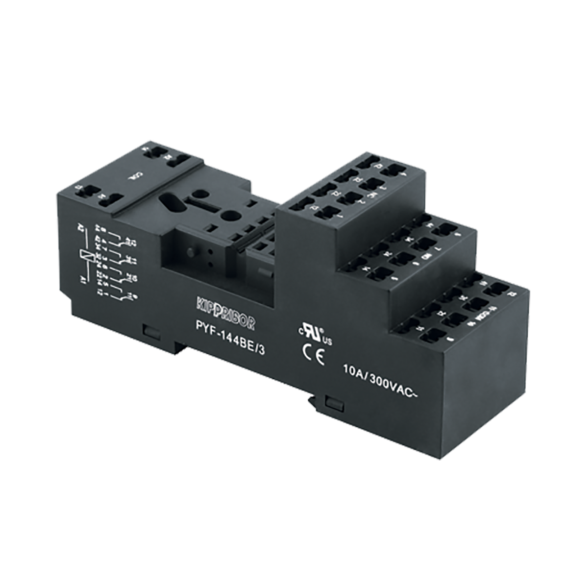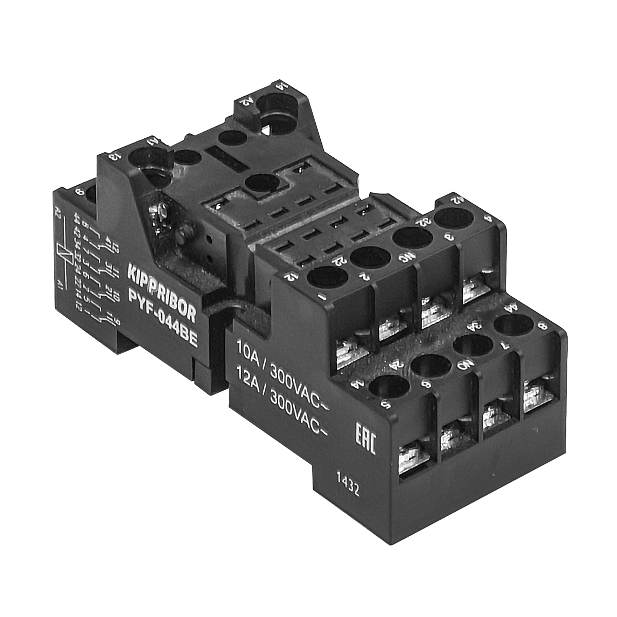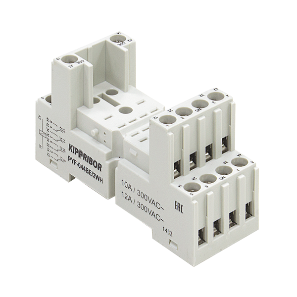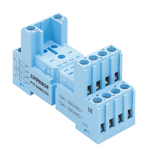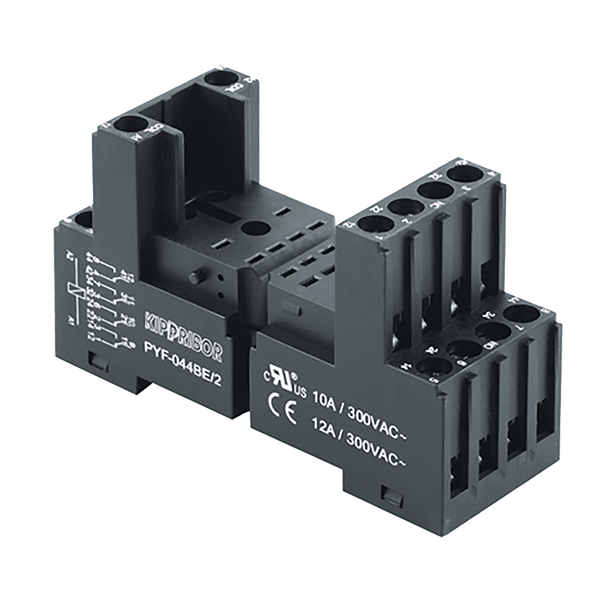 Монтажные колодки KIPPRIBOR PYF-044 и PYF-144 предназначены для установки на стандартную DIN-рейку или плоскость 4-контактных промежуточных реле различных производителей. Изготавливаются из негорючего, прочного и упругого материала (ПА66 + графит), устойчивого к ошибкам при монтаже и эксплуатации.