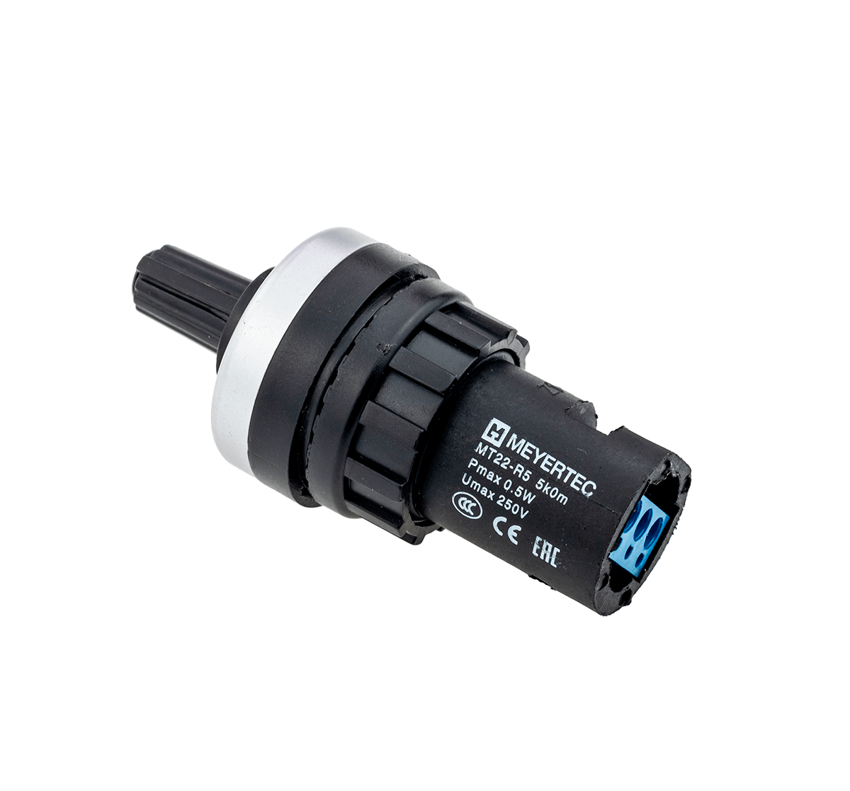 Потенциометры MT22-R5 — переменные резисторы, применяемые для регулировки различных технологических параметров. Одно из основных применений – удаленное управление скоростью вращения электродвигателя через аналоговый вход преобразователя частоты. Потенциометры могут также применяться для регулирования температурного режима, изменения значений напряжения, установки таймера реле времени, регулировки выходного напряжения ТТР.