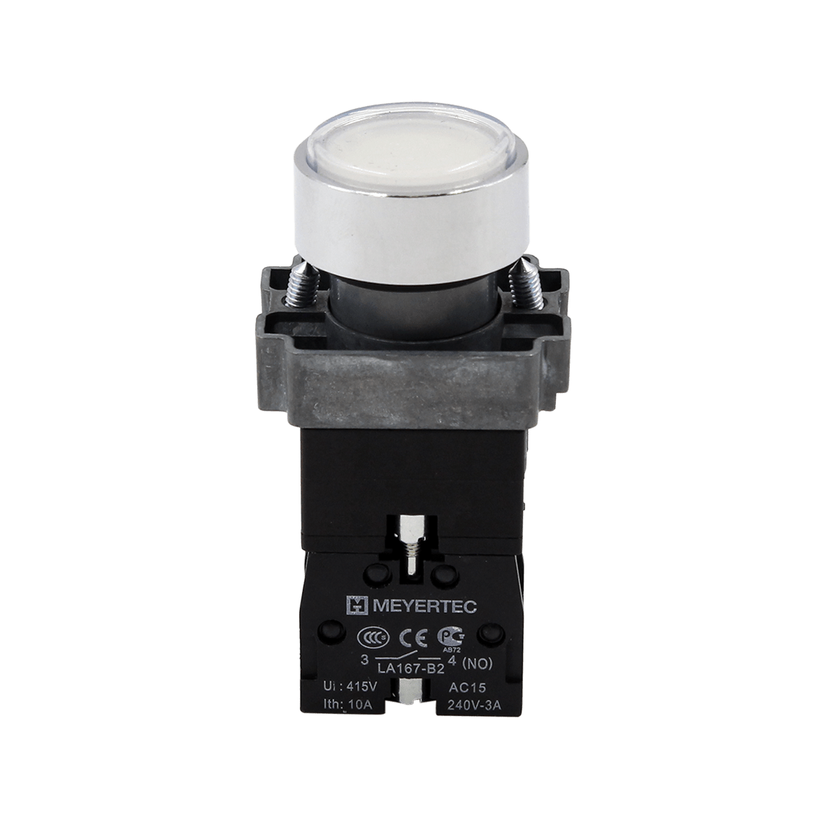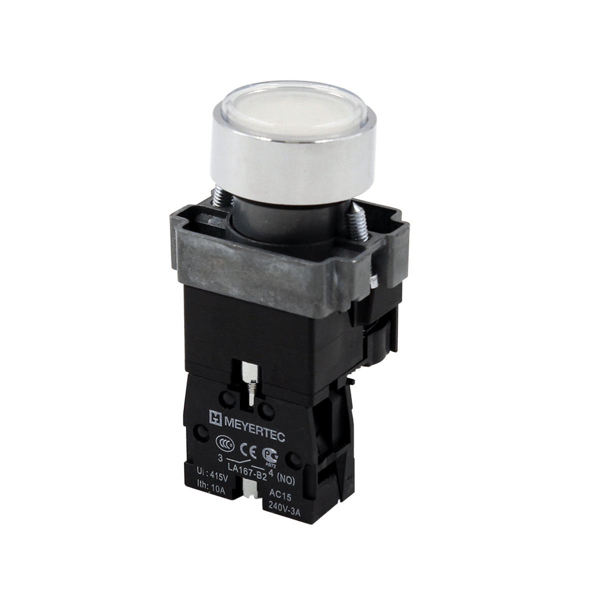 Кнопки MTB2-BWF3171 со степенью защиты IP67 предназначены для управления электромагнитными контакторами, пускателями, реле и другими вторичными цепями. Кнопки выполнены в высоком пыле- и влагозащищенном исполнении с ударопрочностью IK07.