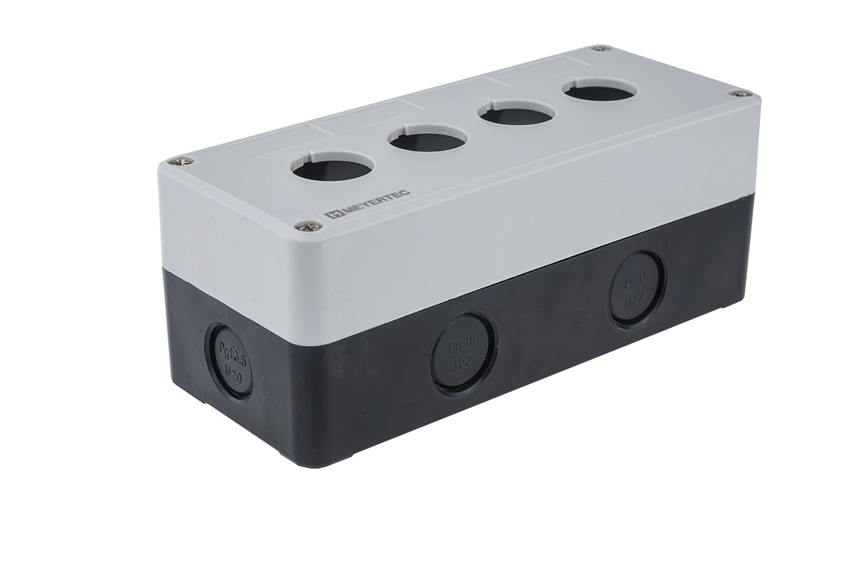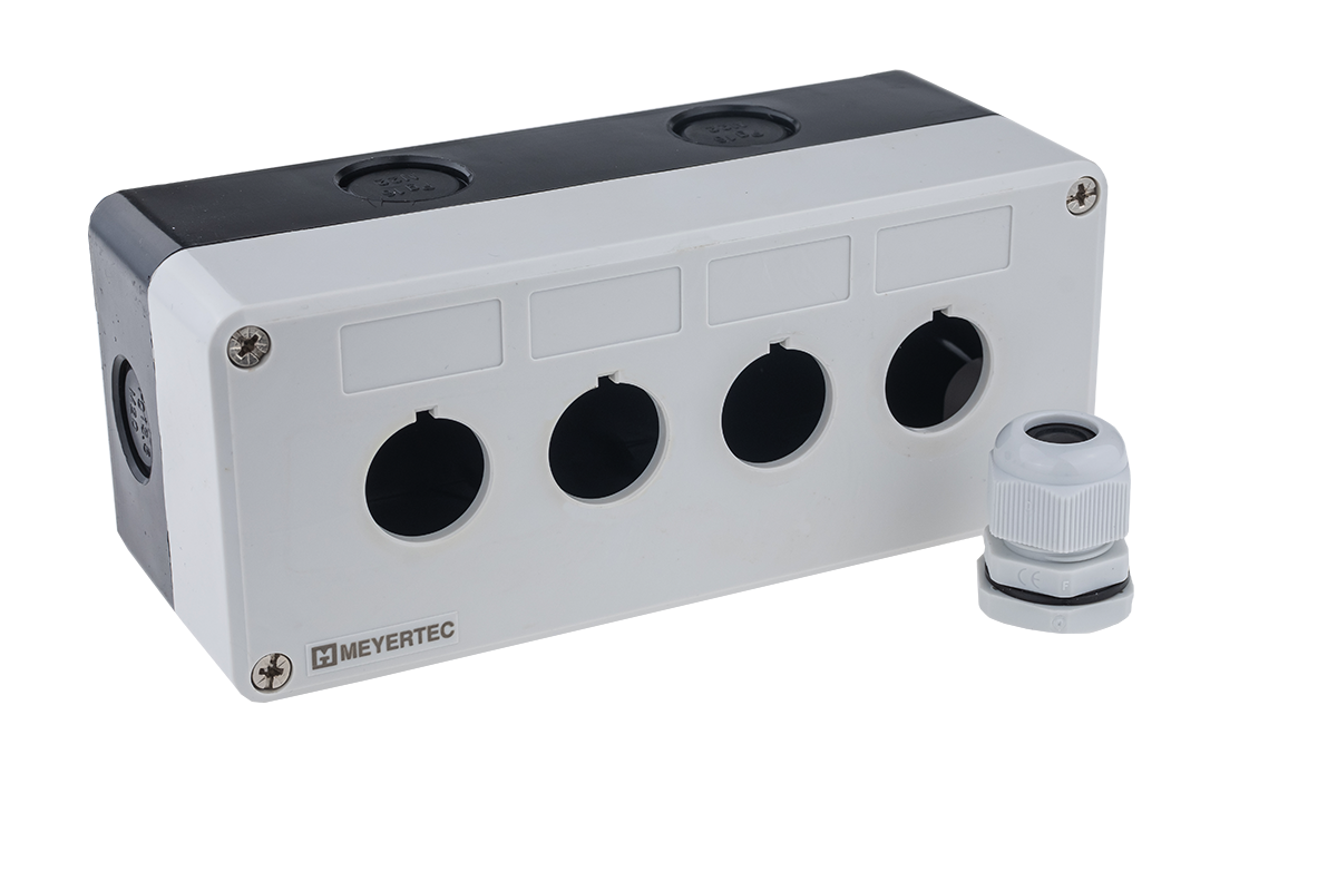 Корпуса кнопочных постов MTB2-PE4 предназначены для установки кнопок управления, переключателей и сигнальных ламп диаметром 22 мм. Рекомендуется установка устройств в пластиковом исполнении. Для кнопок и переключателей в металлическом исполнении необходимо самостоятельно предусмотреть заземление корпуса кнопки.