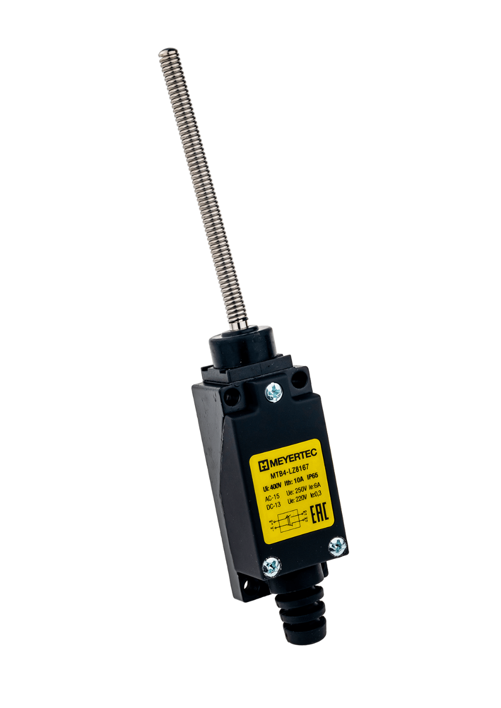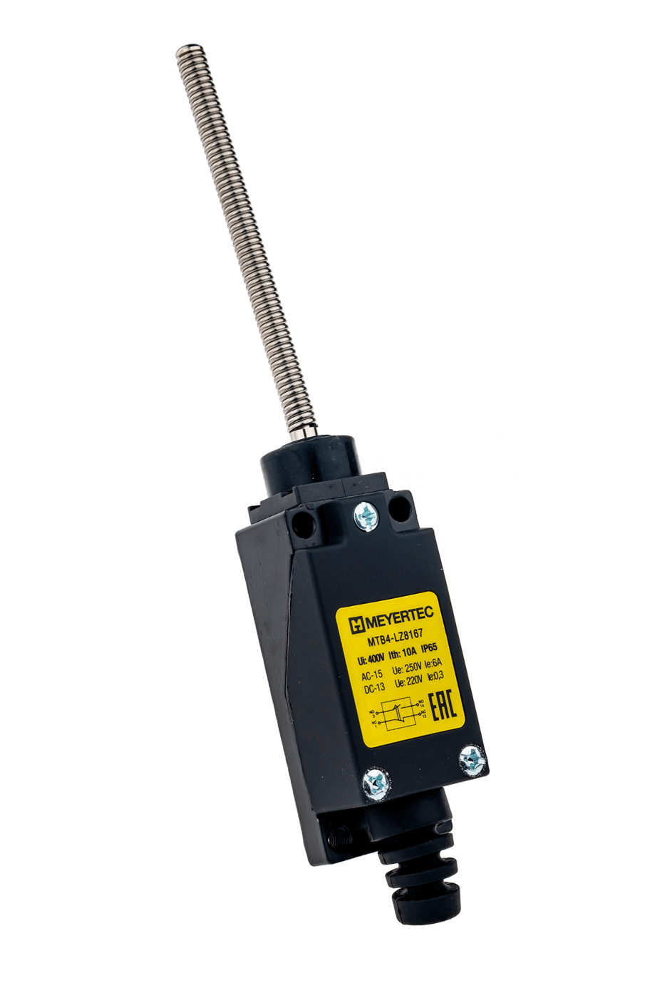 Концевые выключатели серии MTB4-LZ8167 применяются для контроля перемещения установок или частей установок, для контроля конечных положений. Выключатели выполнены в высоком пыле- и влагозащищенном исполнении, которое позволяет использовать данную серию в тяжелых условиях (деревообрабатывающие станки, конвейеры, крановые электроприводы, лебедки, системы контроля и автоматики и другие).