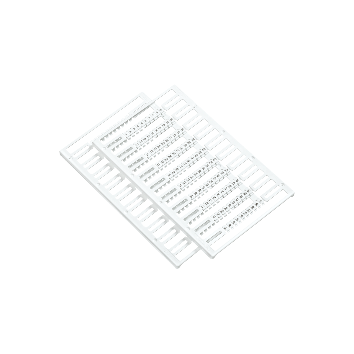 Боковая маркировка MTP-1.5M110S (символы 1…10) предназначена для нумерации и удобства визуализации при подключении проводников к клеммам. Маркировка поставляется в виде пластины, состоящей из 100 маркировочных единиц.