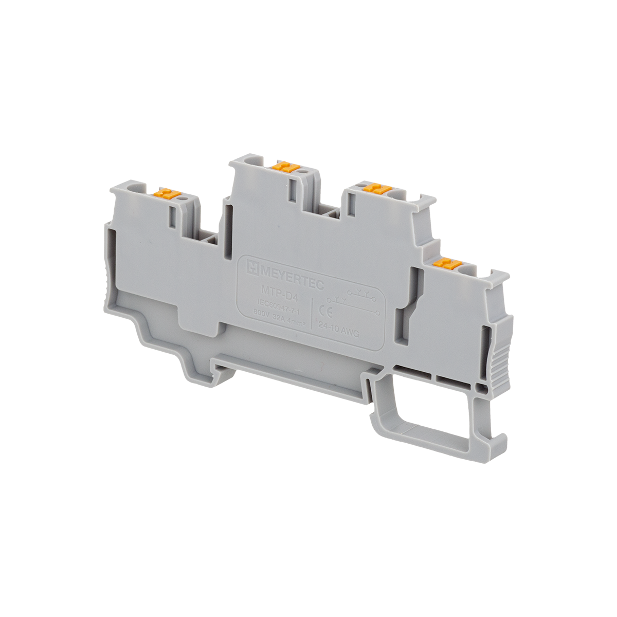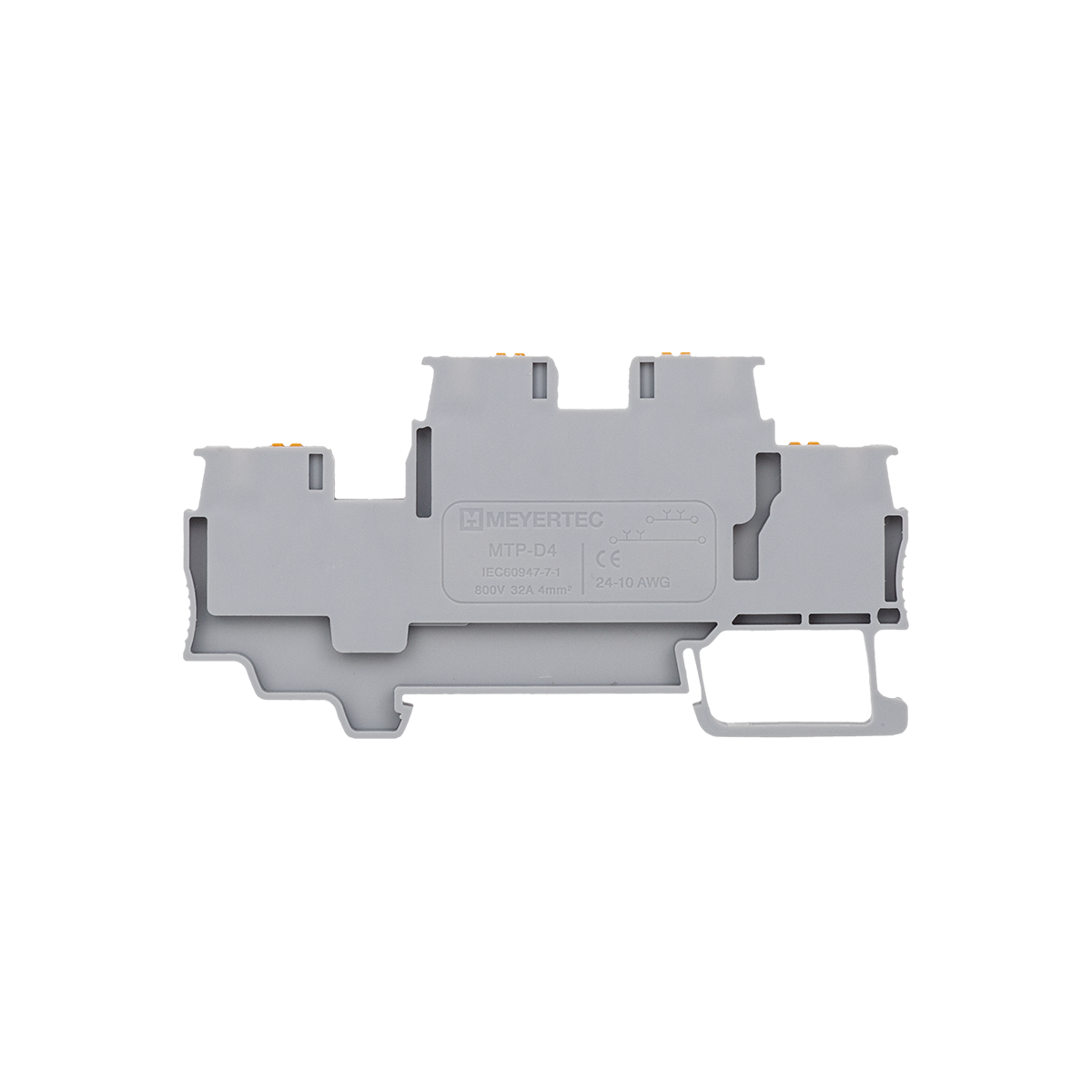 Клеммы MTP-D4 применяются в шкафах автоматики с высокой плотностью монтажа для экономии места на DIN-рейке. Оба уровня имеют монтажное отверстие для установки перемычек.