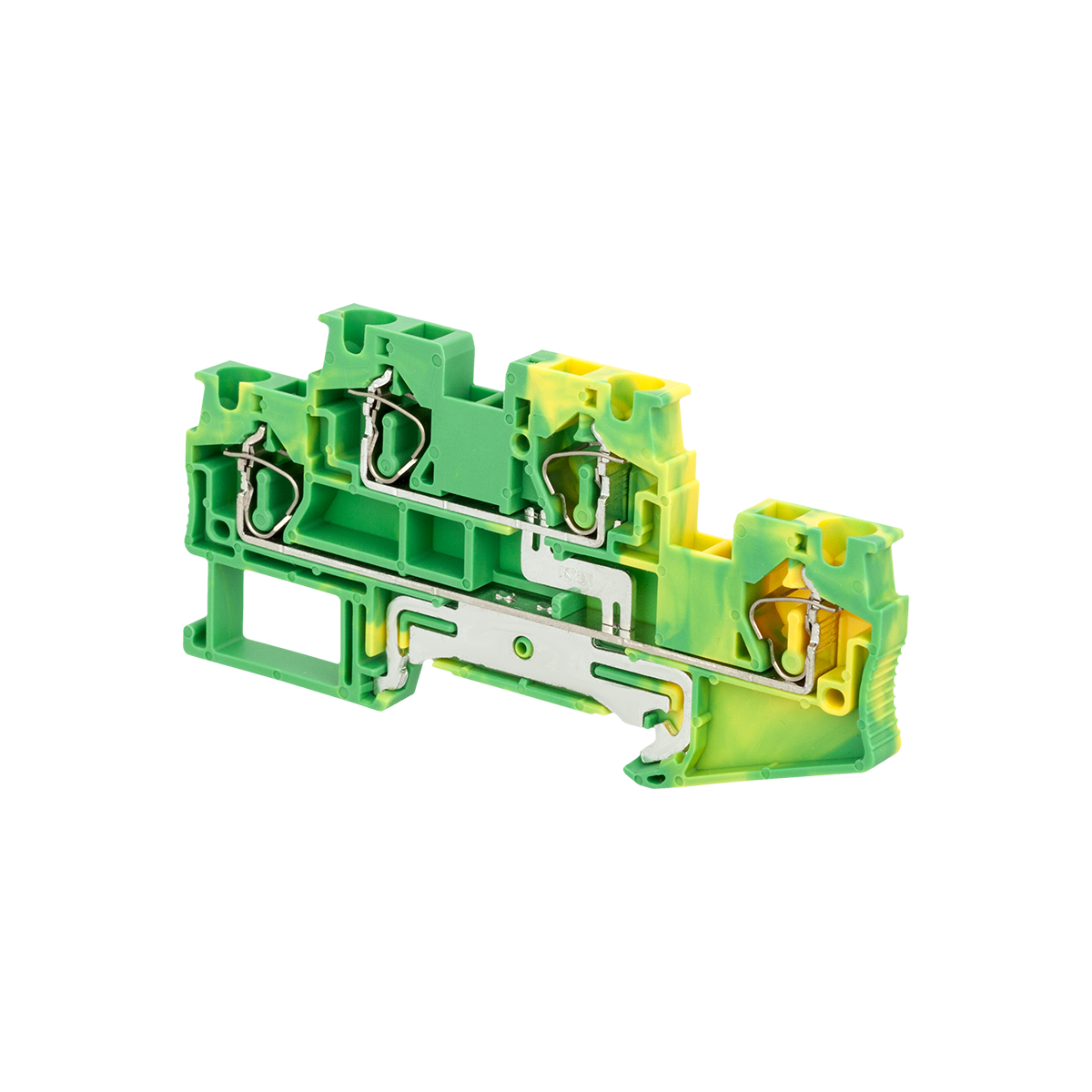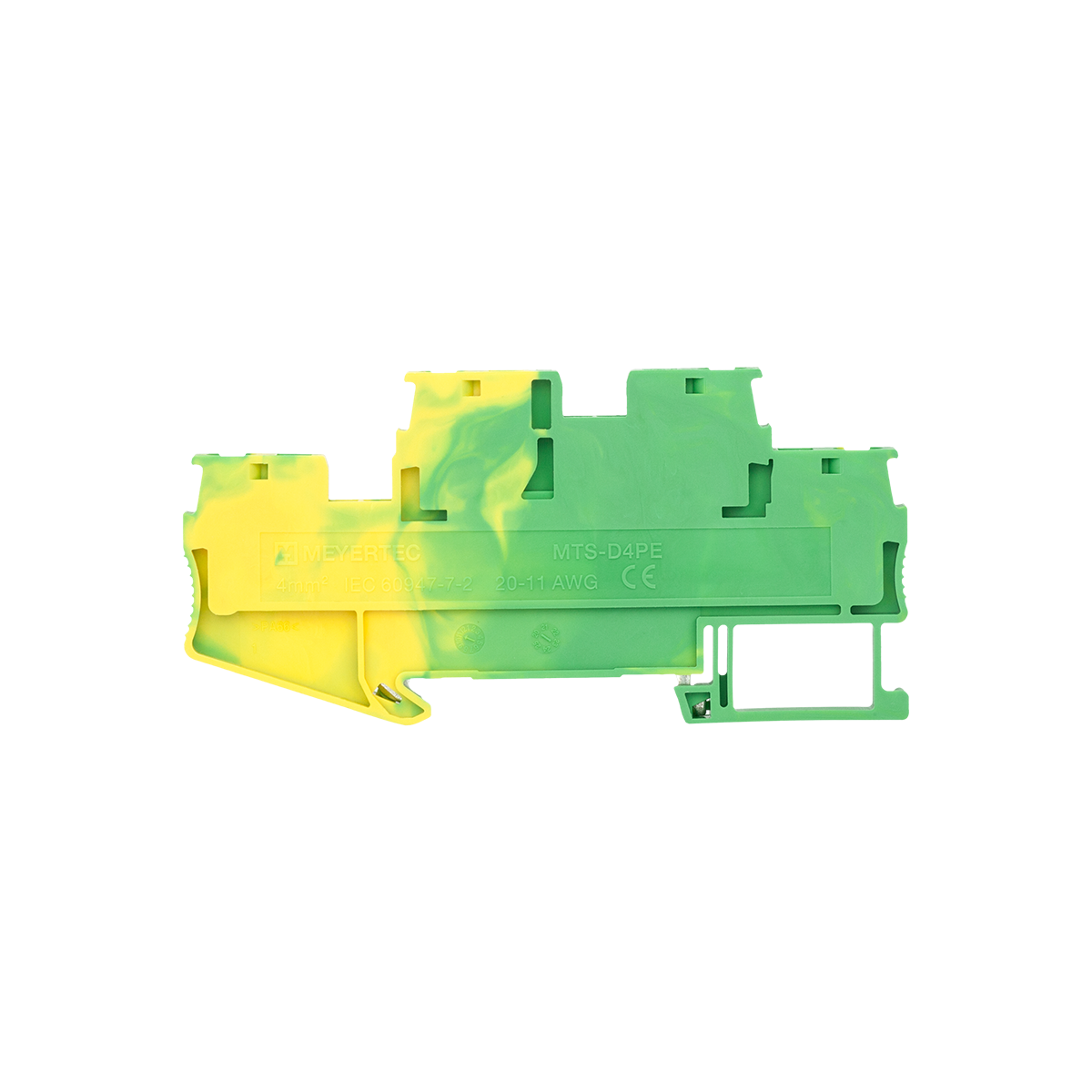 Заземляющие двухуровневые пружинные клеммы MTS-D4PE применяются для подключения защитных заземляющих проводников. Клемма фиксируется на DIN-рейке простым защелкиванием без использования инструментов.