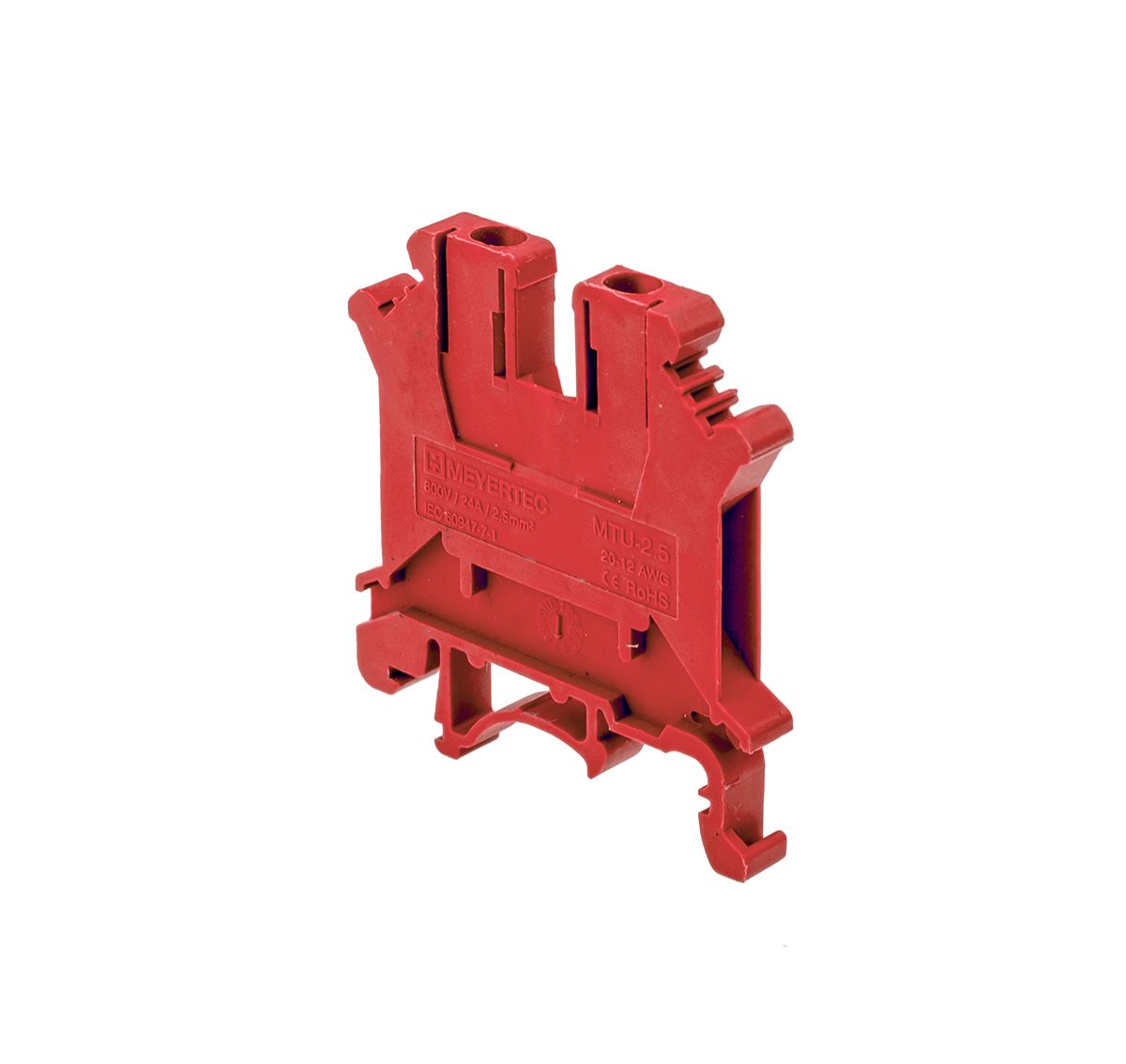 Одноуровневые винтовые клеммы MTU-2.5RD – простой и удобный способ подключения устройств в шкафах автоматики. Клеммы MTU-2.5 предназначены для проводников сечением 2,5мм2. Открытую токопроводящую часть клеммного ряда необходимо закрыть торцевой заглушкой. Одноуровневые клеммы имеют одинаковые габаритные размеры для всех сечений, кроме ширины, которая зависит от сечения выбираемого проводника.