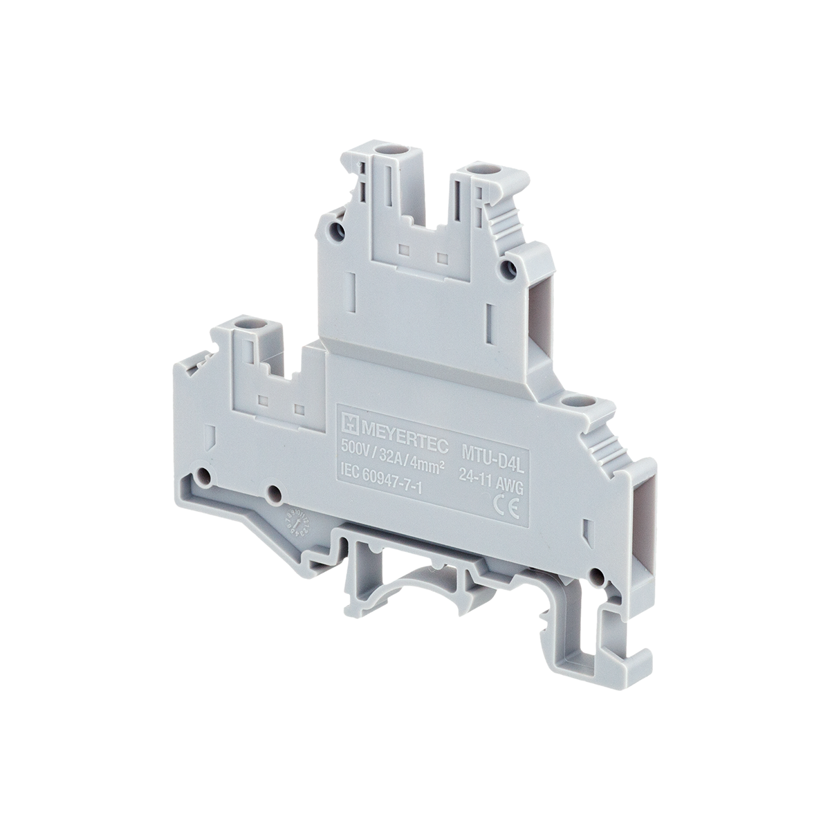 Двухуровневые винтовые клеммы MTU-D4L применяются в шкафах автоматики с высокой плотностью монтажа при ограниченном пространстве. Двухуровневые клеммы экономят до 50 % монтажного пространства на DIN-рейке по сравнению с одноуровневыми клеммами. Верхний и нижний уровень имеет канал для установки перемычек.