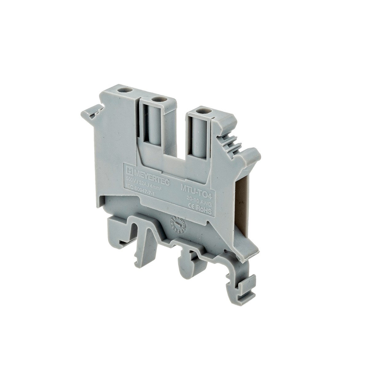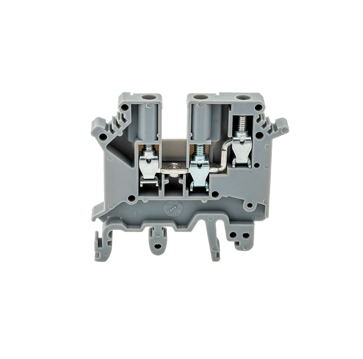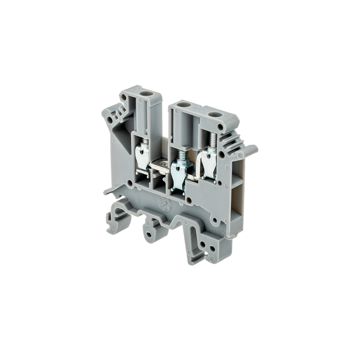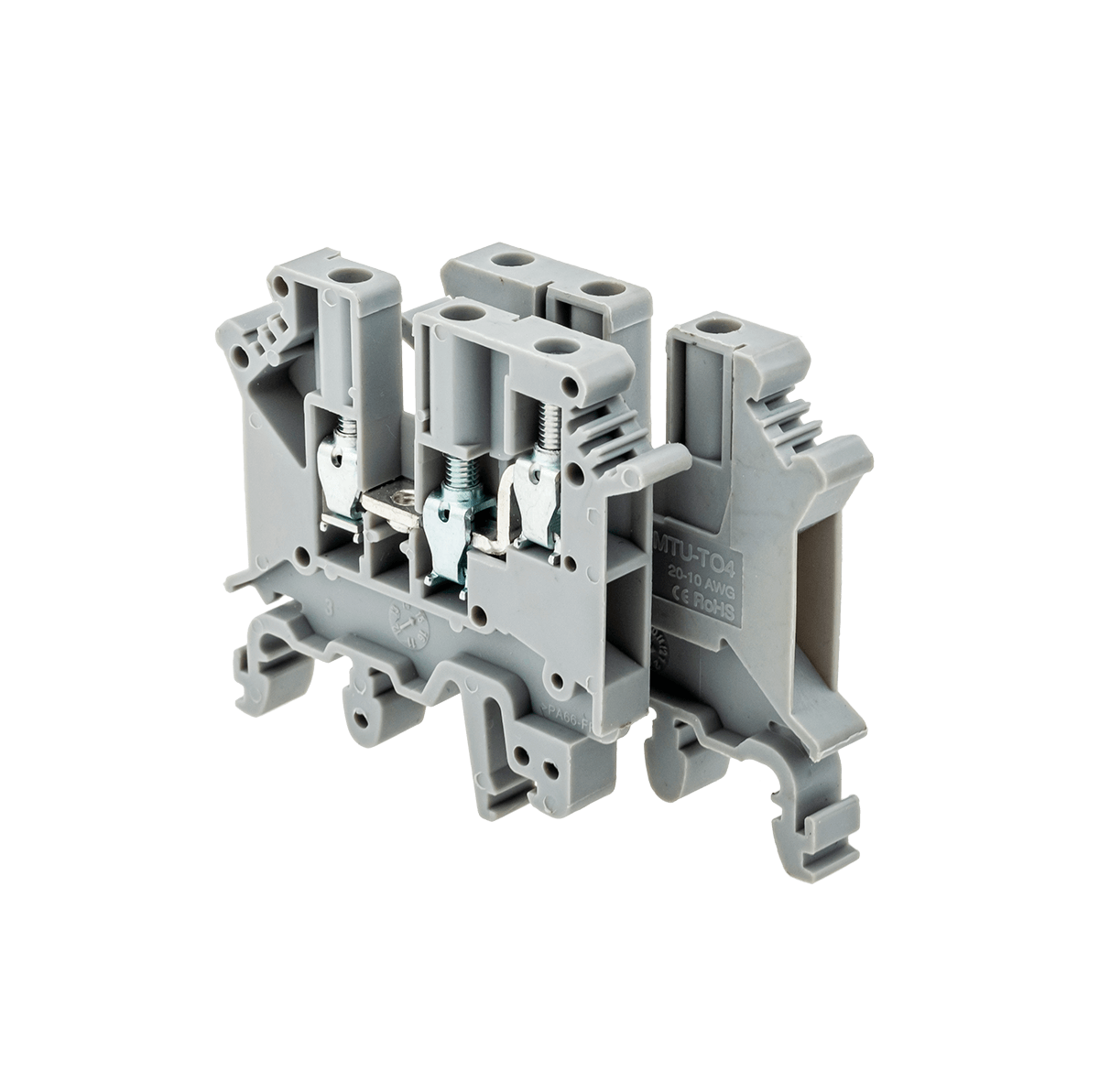 Трехпроводные винтовые клеммы MTU-TO4 применяются для разветвления токовых цепей. Данный тип удобен, когда к одной клемме необходимо подключить несколько проводников. В отличие от многоуровневых клемм данные клеммы имеют единую токопроводящую шину на 3 присоединения.