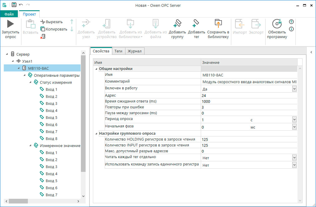 - Добавление приборов ОВЕН с готовыми шаблонами (списками параметров).