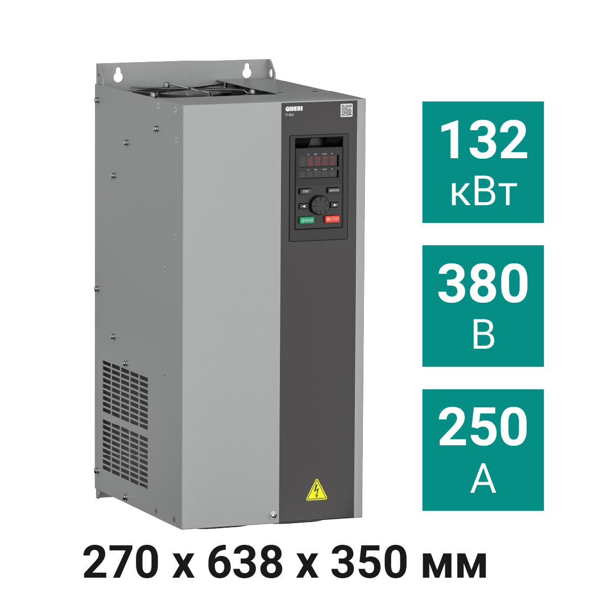 Преобразователь частоты ПЧВ3-132К-В [М01] предназначен для управления электродвигателями мощностью 132,0 кВт. Номинальный выходной ток – 250,0 А, использует трехфазный источник питания переменного напряжения 380 В.