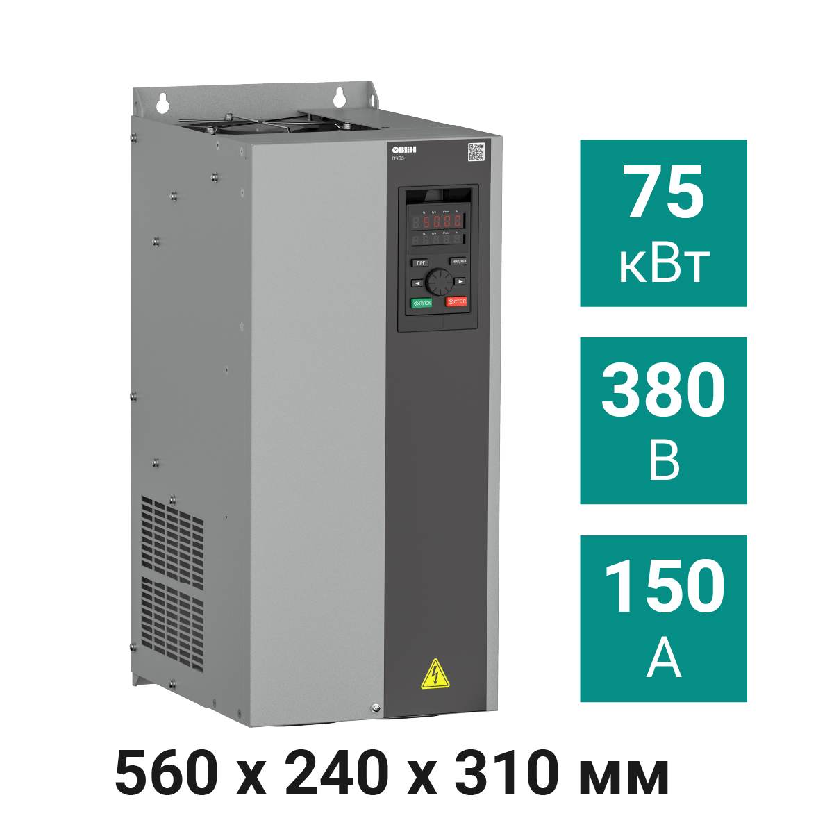 Преобразователь частоты ПЧВ3-75К-В [М01] предназначен для управления электродвигателями мощностью 75,0 кВт. Номинальный выходной ток – 150,0 А, использует трехфазный источник питания переменного напряжения 380 В.
