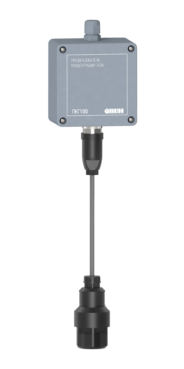 Промышленный датчик концентрации углекислого газа ОВЕН ПКГ100-СО2 предназначен для непрерывного преобразования концентрации газа в два унифицированных выходных сигнала 4…20 мА и передачи измеренных значений по интерфейсу RS-485 (Modbus RTU).