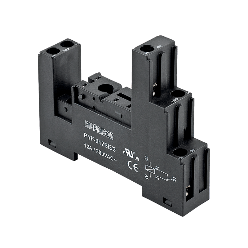 Монтажные колодки KIPPRIBOR PYF-012BE, PYF-022BE, PYF-112BE, PYF-122BE для 1- и 2-контактных промежуточных реле предназначены для установки на DIN-рейку 2-контактных промежуточных реле KIPPRIBOR серии MR и 1-контактных промежуточных реле различных производителей. Изготавливаются из негорючего, прочного и упругого материала (ПА66 + графит), устойчивого к ошибкам при монтаже и эксплуатации.