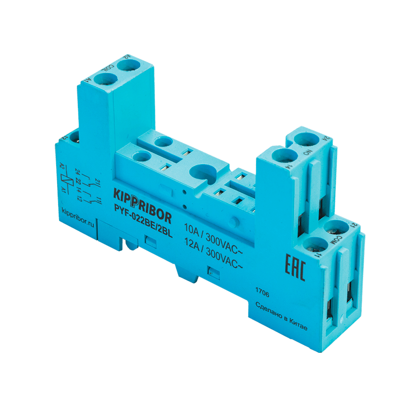 Монтажные колодки KIPPRIBOR PYF-012BE, PYF-022BE, PYF-112BE, PYF-122BE для 1- и 2-контактных промежуточных реле предназначены для установки на DIN-рейку 2-контактных промежуточных реле KIPPRIBOR серии MR и 1-контактных промежуточных реле различных производителей. Изготавливаются из негорючего, прочного и упругого материала (ПА66 + графит), устойчивого к ошибкам при монтаже и эксплуатации.