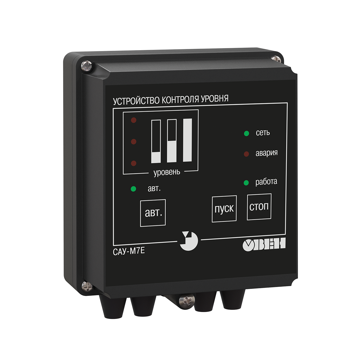 Прибор САУ-М7Е обеспечивает контроль уровня жидких или сыпучих материалов в резервуаре. Может управлять заполнением, осушением или поддержанием уровня в отопительных котлах, водонапорных башнях, зернохранилищах и т.п.