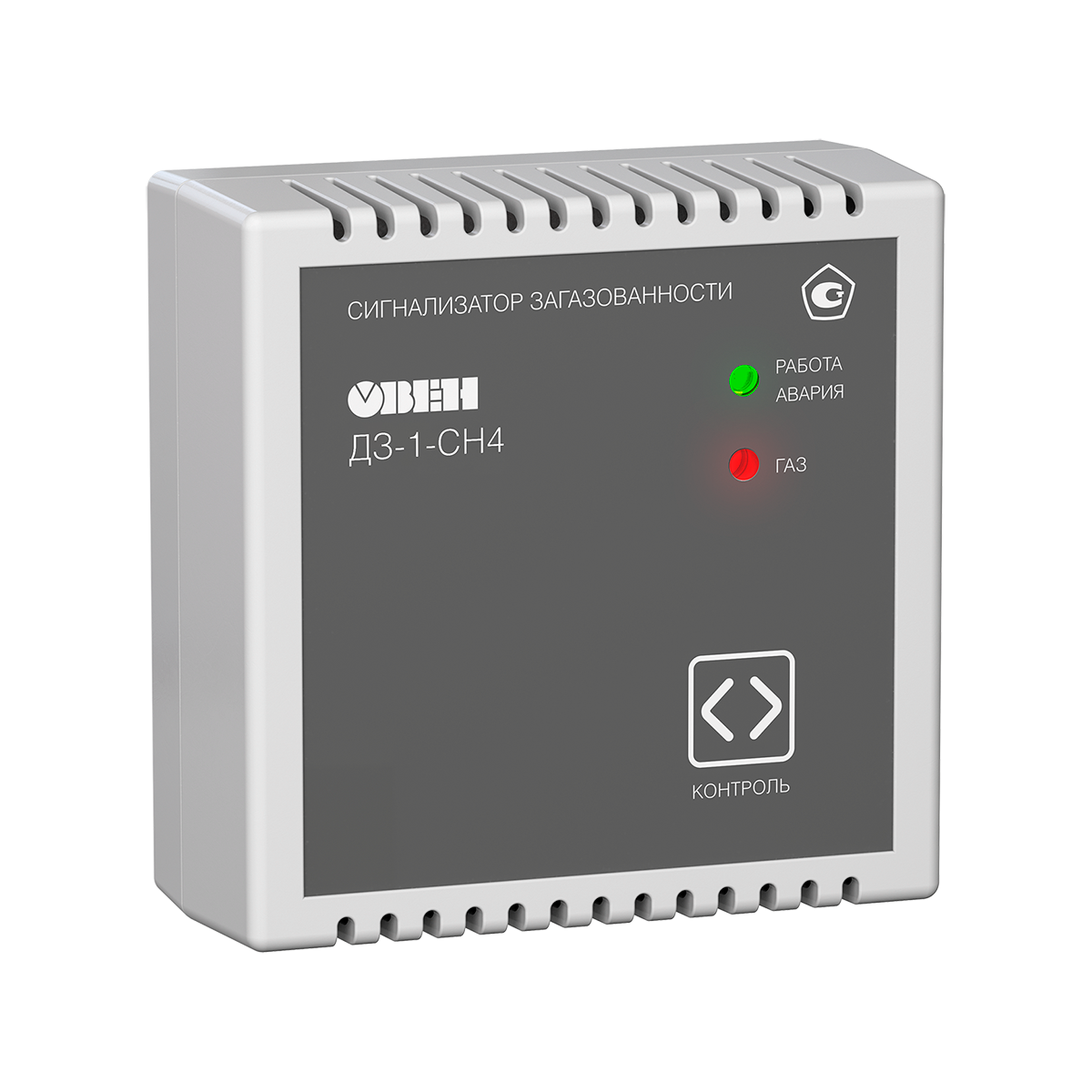 Детектор представляет собой стационарное настенное устройство непрерывного действия для обнаружения утечек и скопления горючего газа. Контроль концентрации СН4 в воздухе осуществляется при помощи металлооксидного полупроводникового чувствительного элемента, принцип действия которого основан на изменении проводимости сенсора в зависимости от концентрации СН4 в окружающей среде. Применяемый метод отбора пробы – диффузионный. Контролируемая площадь составляет примерно 50 м².