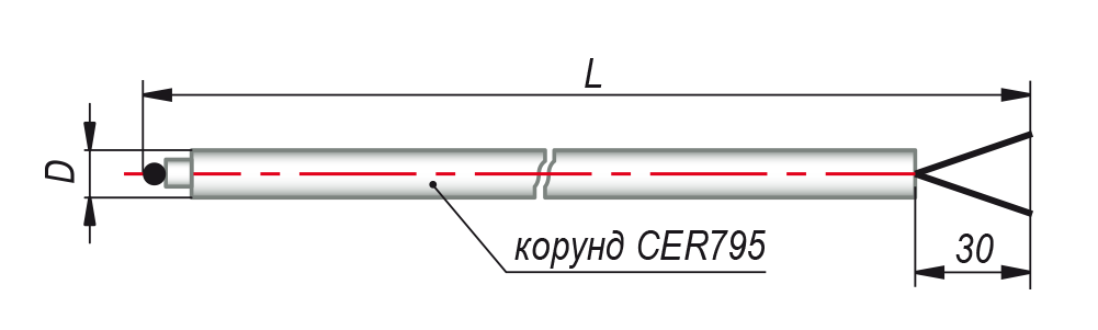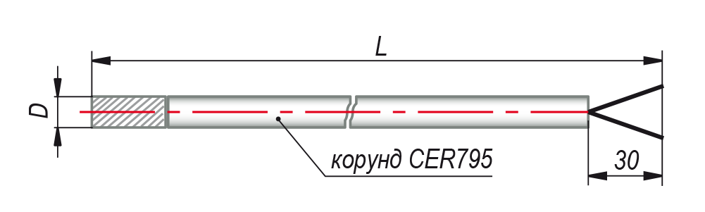 Под заказ возможно изготовление термопреобразователей с другими длинами металлической и керамической частей.