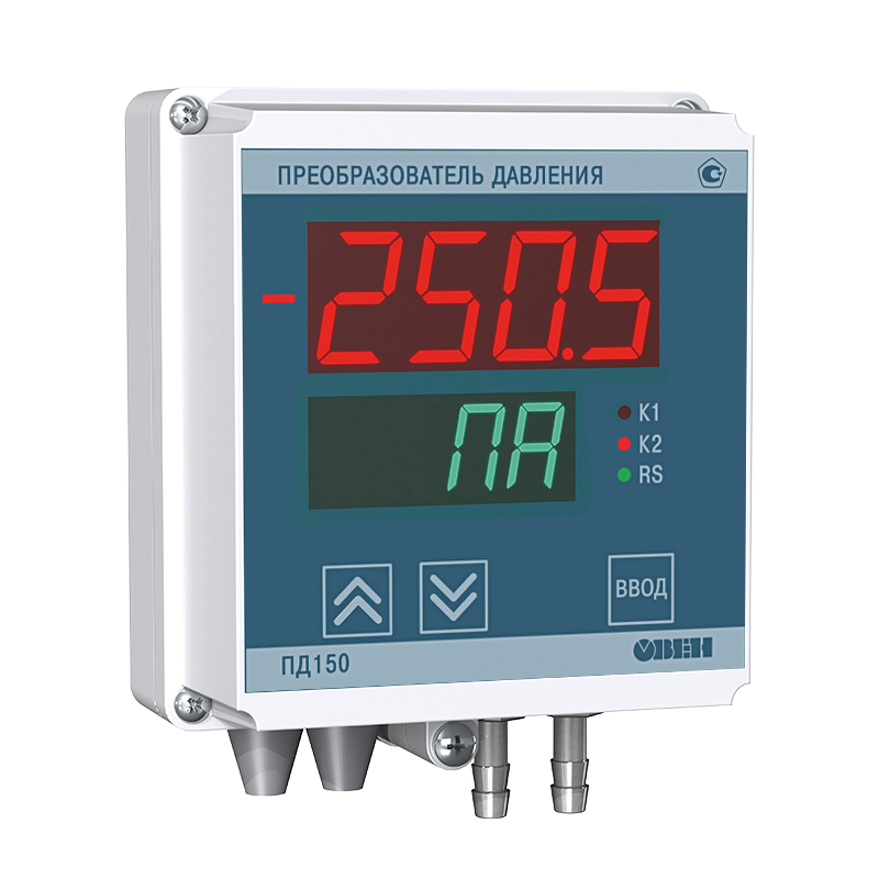 Электронный тягонапоромер, тягомер, перепадомер ОВЕН ПД150 представляет собой электроконтактный манометр с двумя силовыми реле и масштабируемым выходным сигналом RS-485 (Modbus RTU) или 4…20 мА. Высокоточный сенсор с открытым кремниевым кристаллом позволяет измерять давление неагрессивных к кремнию газов, в том числе горючих (метан) и дымовых (топочных).