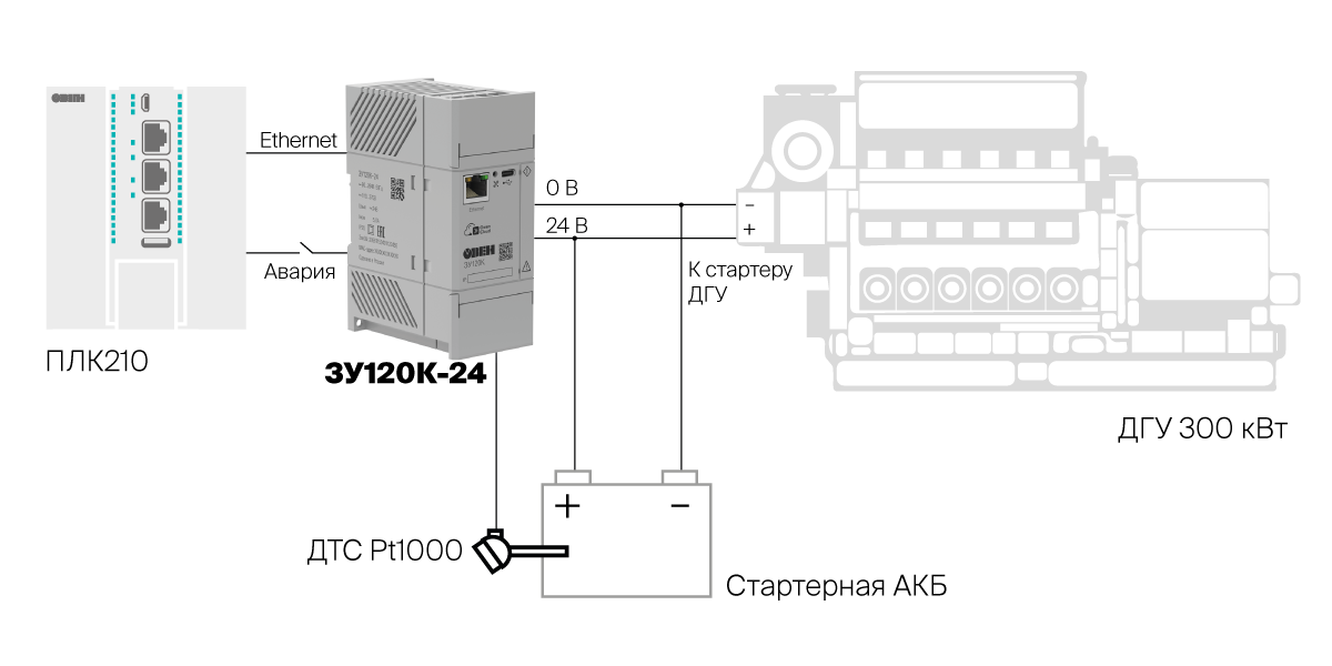Зарядное устройство ОВЕН ЗУ120К-24 предназначено для непрерывного подключения к аккумуляторным батареям и поддержания их в режиме постоянной готовности. В составе щита управления устройство может использоваться для работы с дизельными, бензиновыми и газовыми электростанциями для заряда стартерных свинцово-кислотных АКБ или для питания различного промышленного оборудования с зарядом литиевых АКБ.