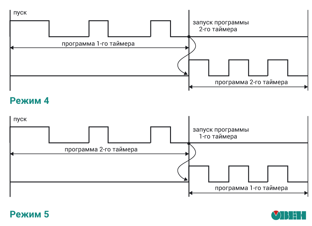 Режимы 4 и 5 – перезапуск одного таймера после окончания работы другого.